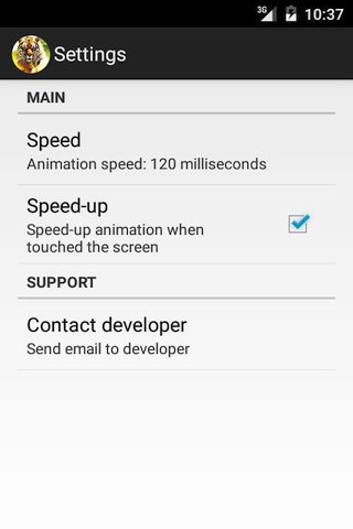 Прыжок тигра![]() Описание живых обоев:Несмотря на крайне символический размер, перед нами довольно качественные живые обои с изображением тигра, который хочет буквально выпрыгнуть на вас с экрана мобильного устройства. Именно данная анимация (сдобренная оригинальным эффектом волн) и является главной "изюминкой" украшения. По традиции, приложение также обладает рядом настроек для персонализации внешнего вида (вроде возможности настроить скорость анимацию), поддержкой бесчисленного количества языков и даже встроенным режимом разработчика.Из других приятных особенностей заставки - оптимизация под большинство Android аппаратов (по крайней мере, так заявляет сам разработчик, ибо проверить это на практике довольно сложно), возможность ускорения анимации при прикосновении к экрану, сравнительно низкий расход заряда батареи и поддержка старых версий ОС. Всем любителям природной красоты и невероятной животной грации - посвящается! Не пожалеете! Голосов: 1