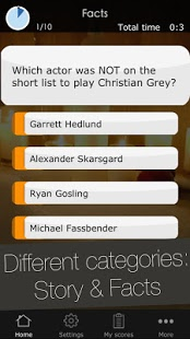 50 оттенков серого![]() Краткий обзор игры50 оттенков серого - небольшая и достаточно простенькая игра для поклонников и поклонниц одноименного кинофильма за авторством Сэма Тейлора-Джонсона, базирующийся на книге Эрики Леонард. Как уже было сказано выше, игра довольно простая и представляет из себя обыкновенный тест на знание первоисточника. Больше добавить нечего. Присутствует несколько десятков вопросов, примитивный интерфейс и по сути, все. Рекомендуется исключительно фанатам одноименной кинокартины.Голосов: 1
