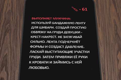Sex Deck Free![]() Краткий обзор игрыНовая текстовая игра, предназначенная для влюбленных пар. По своей сути, весь геймплей "Sex Deck Free" сводится к выполнению различных заданий, каждое из которых призвано привнести максимальное разнообразие в интимную жизнь партнеров. Впрочем, как сказано в одном из пунктов самой игры, главное здесь не победа, а наслаждение процессом, который открывает новые горизонты и позволяет получить ранее невиданные впечатления от наслаждения друг другом.На текущий момент, игра доступна в платном и бесплатном варианте (именно он и был представлен по ссылке внизу), которые отличаются лишь количеством тематических колод и самих карточек. Кроме того, "Sex Deck Free" поддерживает двенадцать языков (включая русский) и не имеет встроенной рекламы. В целом, достаточно стильно оформленный проект (напоминающий классические настольные игры), который отлично подойдет для раскрепощенных людей и тех, кто открыт для новых экспериментов. Разумеется, только для лиц старше 18 лет! Голосов: 1